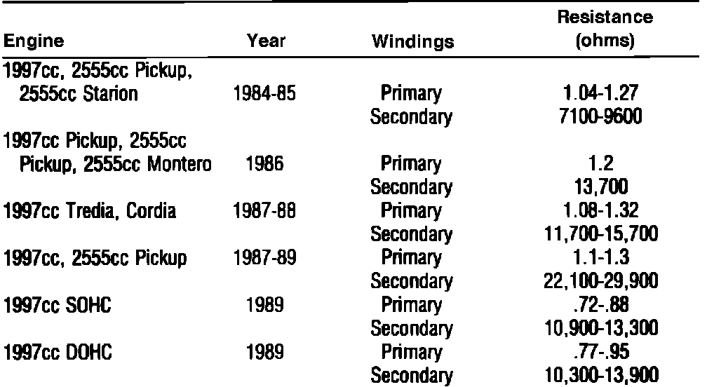 Fig. 8 Ignition Coil Specifications: