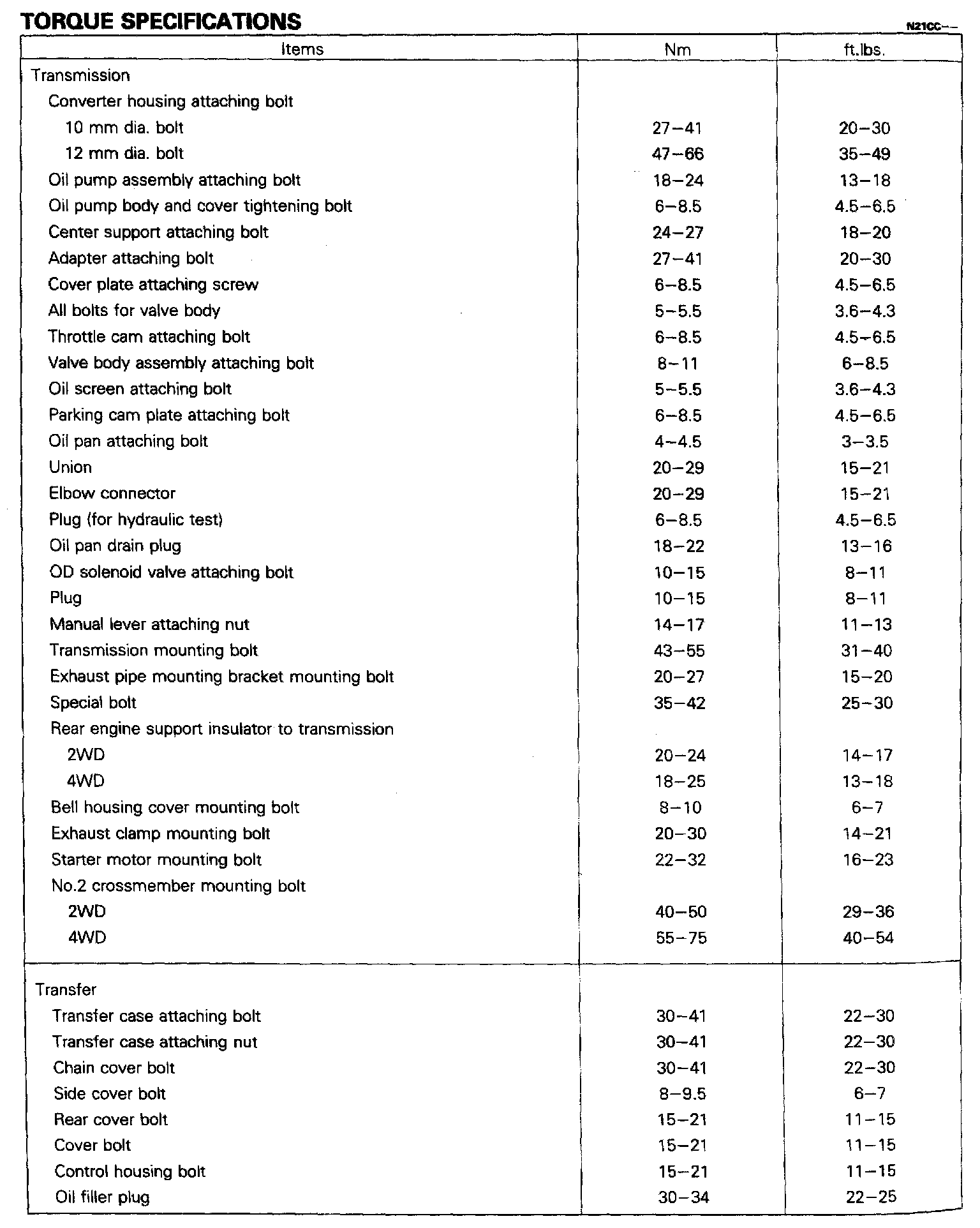 AW372/KM148 4-spd A/T, Transmission & Transfer Case Torque:
