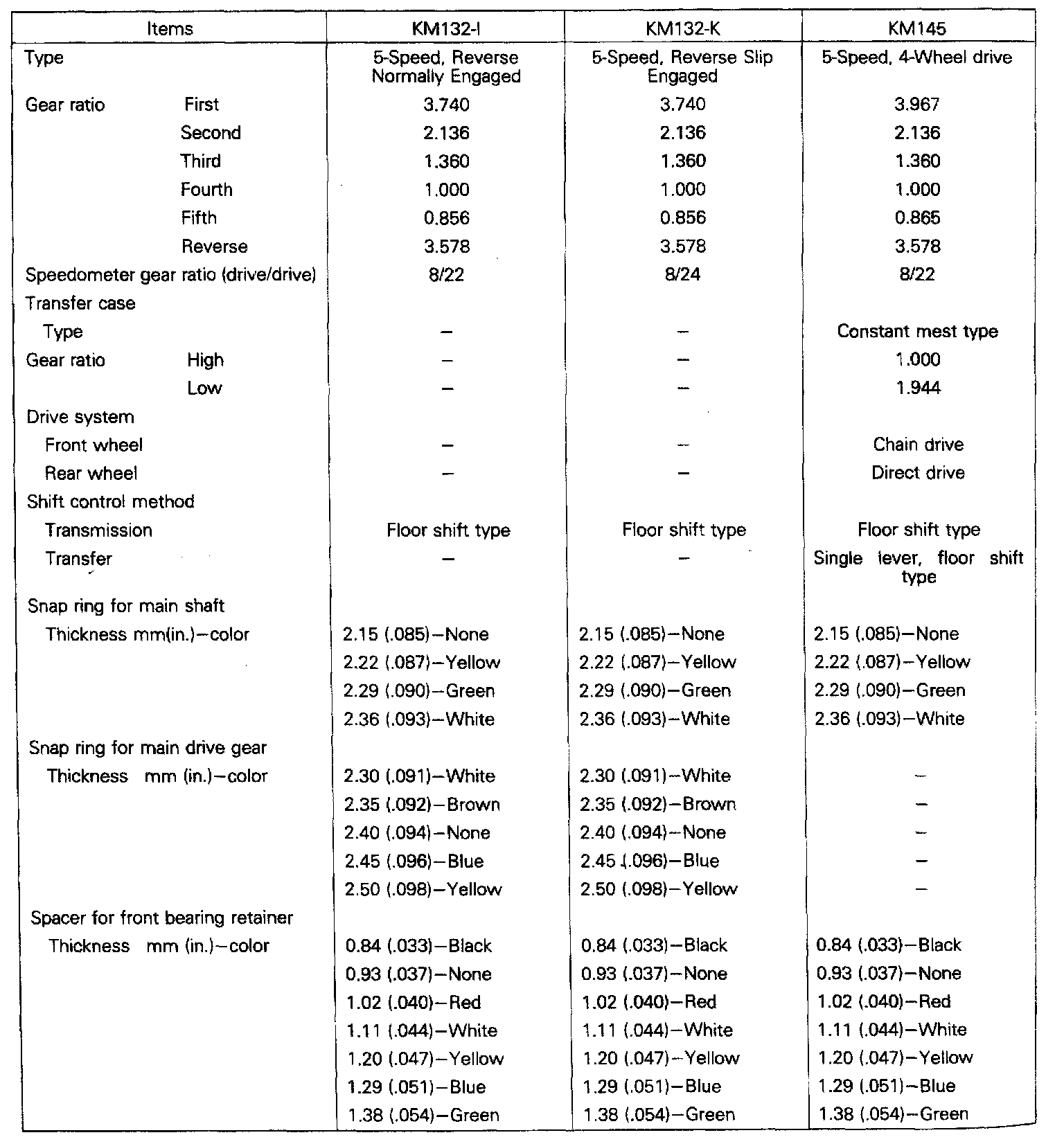 KM132/KM145 5-spd M/T, Gear Ratios: