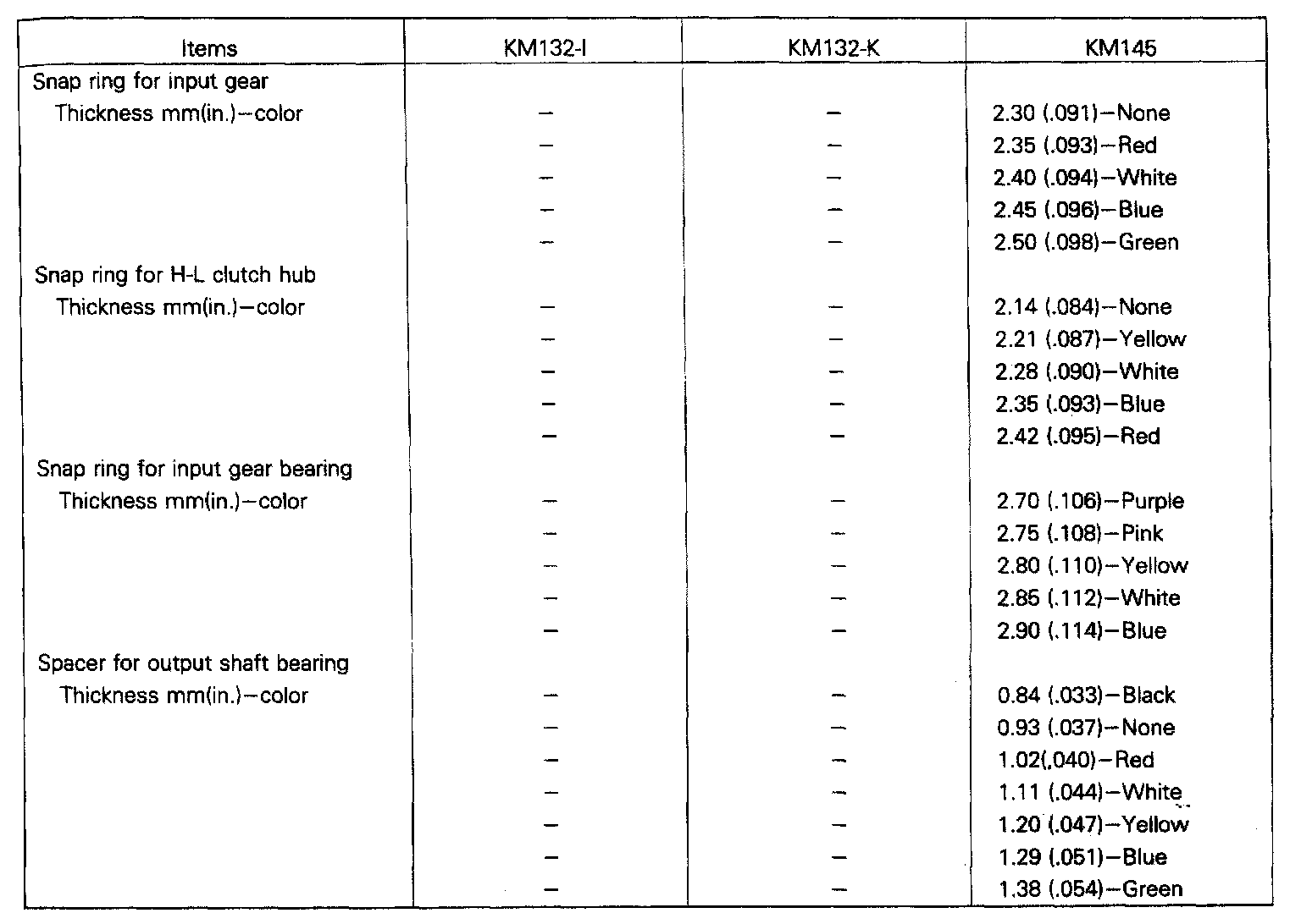 KM132/KM145 5-spd M/T, Input & Output Bearing Thickness: