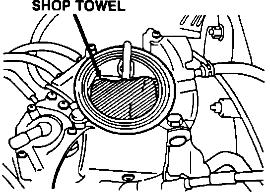 5. Using a clean shop towel, cover both bore openings of the carburetor.