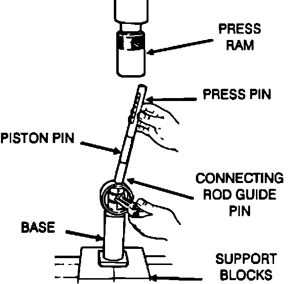 6. Press the piston pin through the connecting rod until the guide pin contacts the stop screw.
