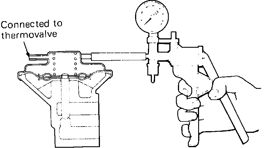 7. Connect a vacuum pump to the thermo valve and apply vacuum, Fig. 110. If it is not possible to establish a vacuum, the thermo valve is defective.