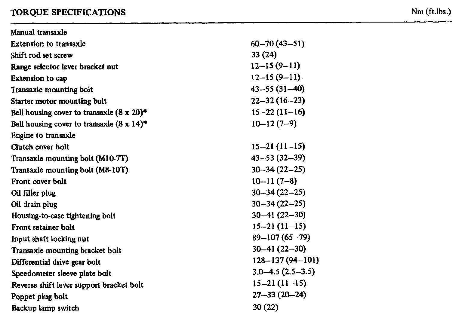 KM163 5-spd M/T / KM166 4-spd M/T, Clutch Torque: