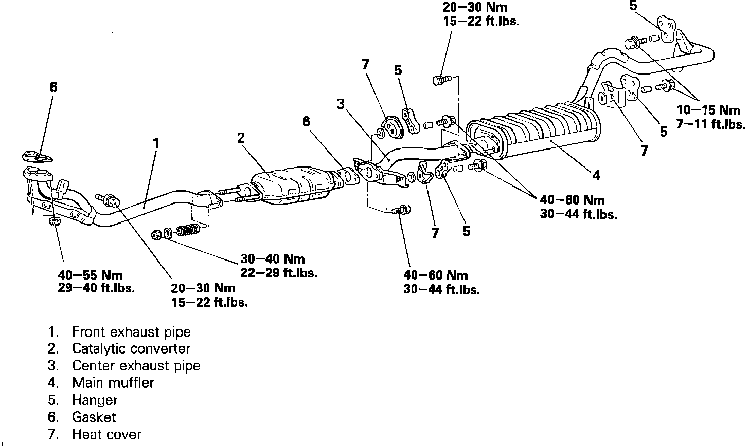 Fig. 606 Exhaust system exploded view.: