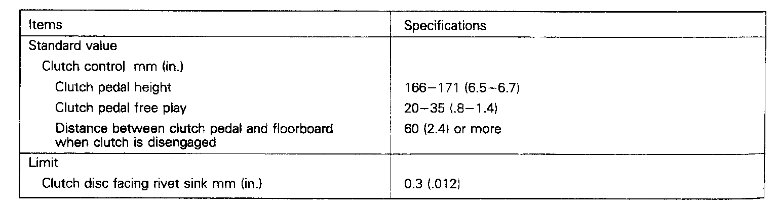 KM132/KM145 5-spd M/T, Clutch Standard Values & Limits: