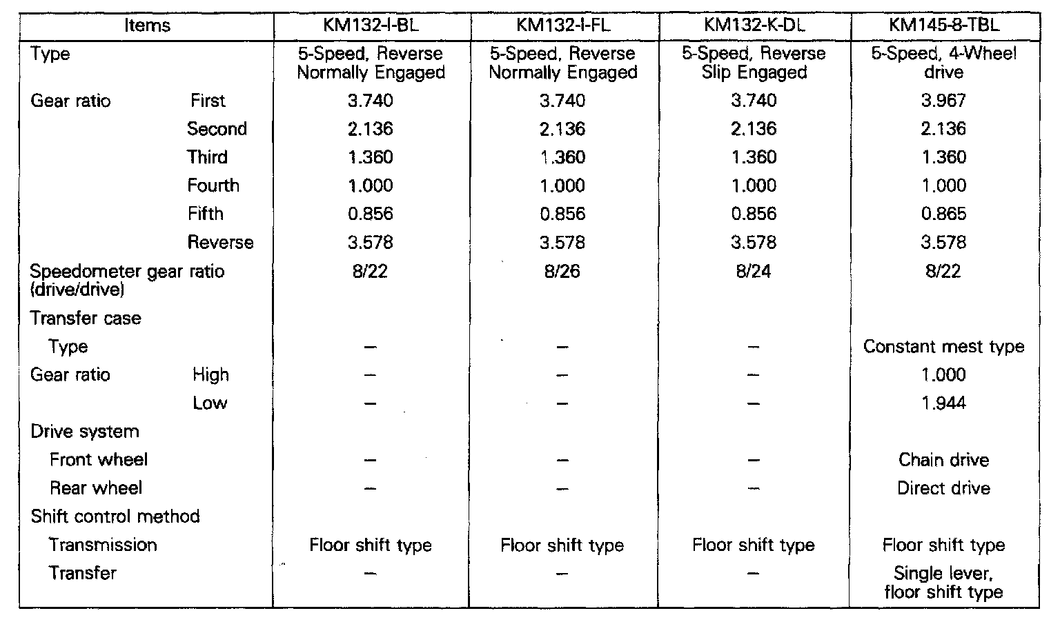 KM132/KM145 5-spd M/T, Gear Ratios: