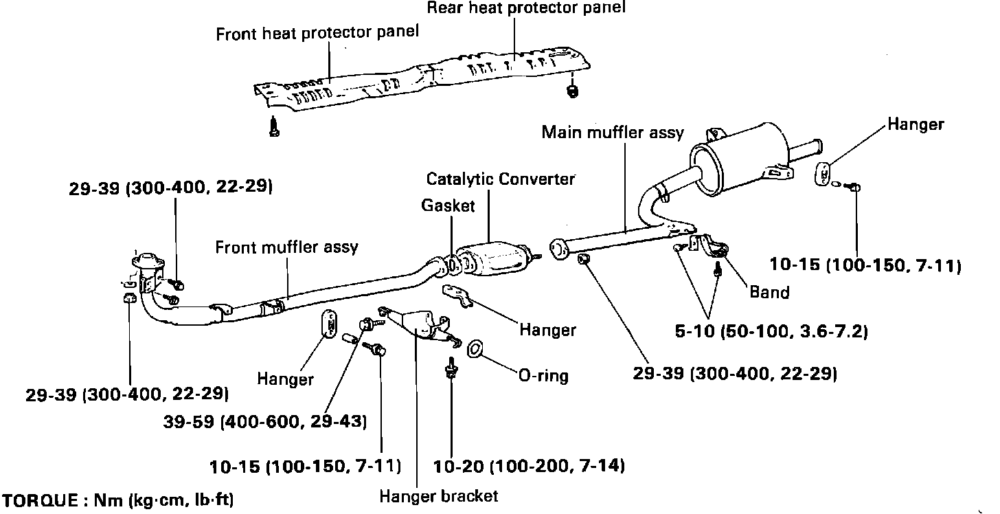 Fig. 602 Exhaust system exploded view.: