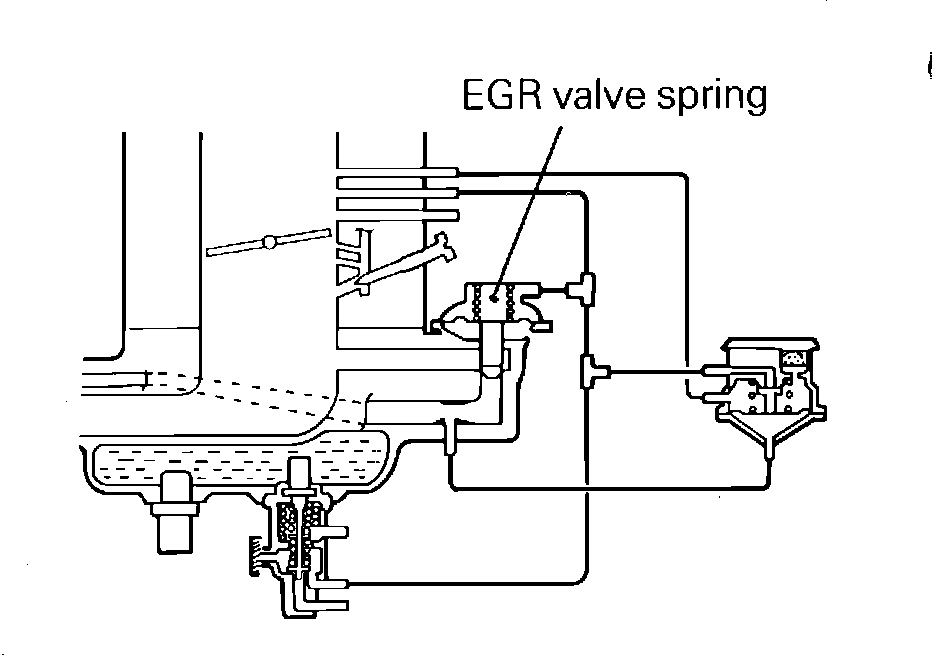 During idling or full throttle operation 'E' port vacuum, Fig. 60 is low, the EGR valve is closed by spring force and there is no EGR flow.