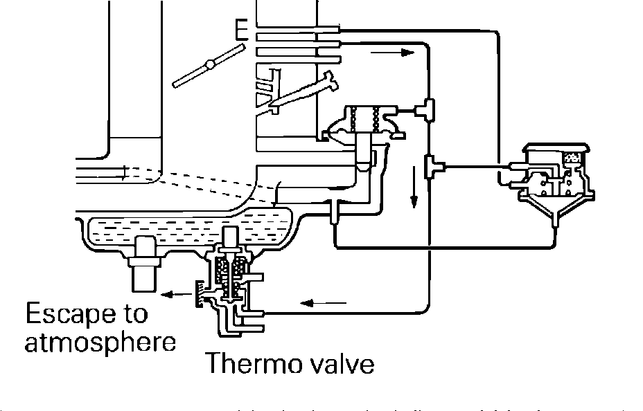 When the engine is cold the thermo valve opens to allow 'E' port vacuum to vent to atmosphere, Fig. 61. The EGR valve remains closed by spring force.