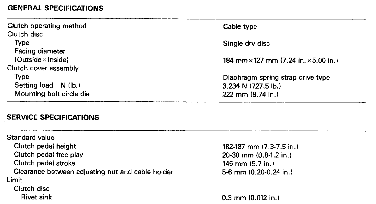 4-spd M/T / 5-spd M/T, Clutch Dimensions: