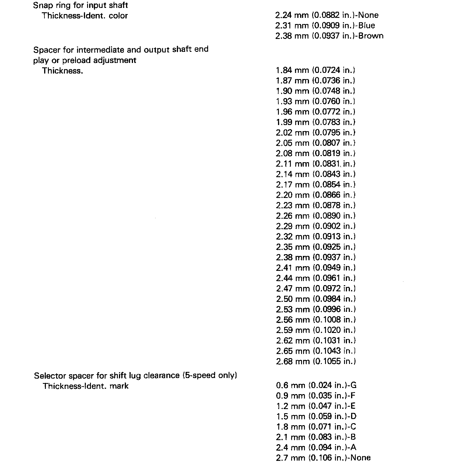 4/5-spd M/T, Input, Intermediate & Output Shaft End Play/Thickness:
