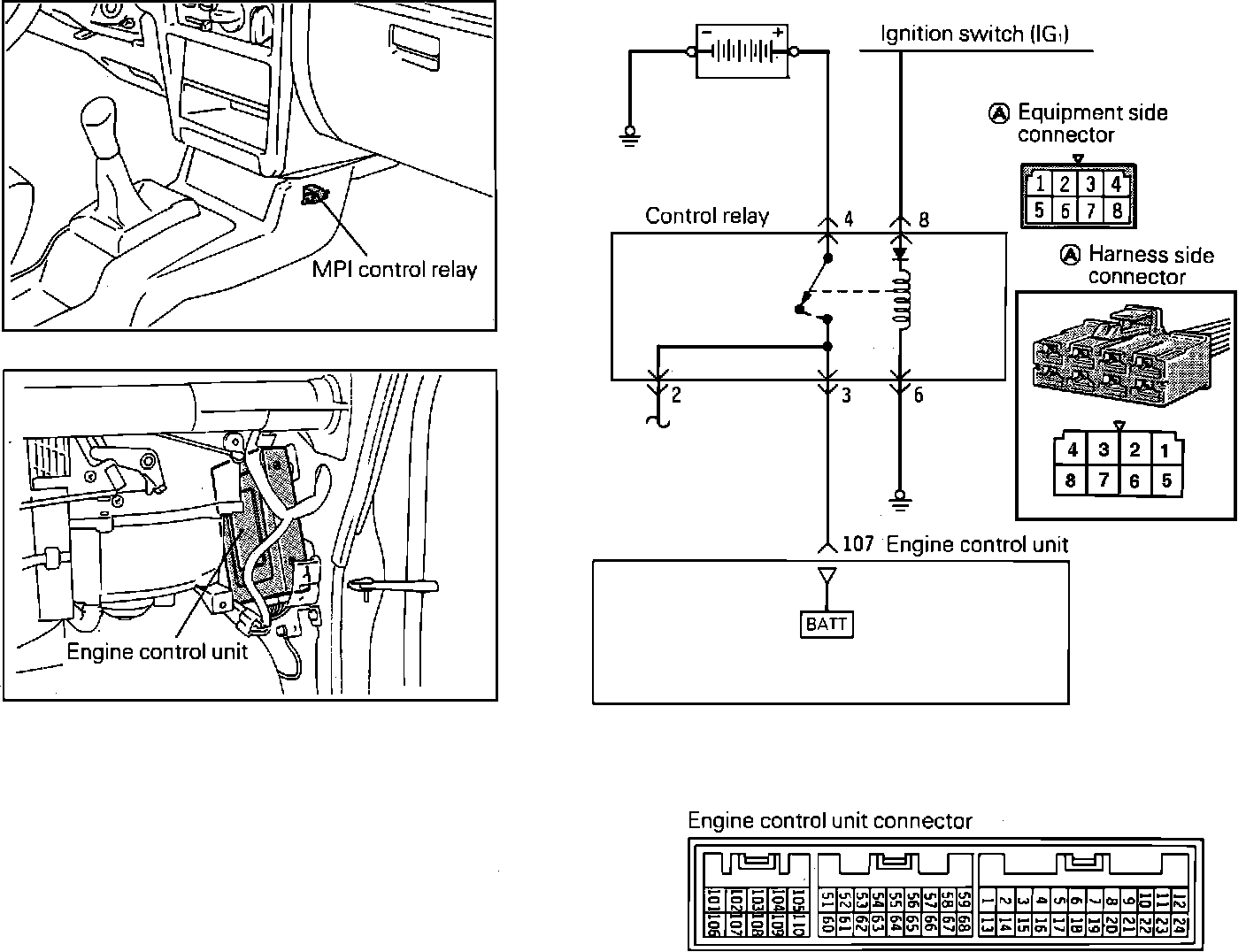 Failure of the control relay could interrupt power supply to the fuel pump, injectors and ECU, resulting in start failure. Also see Fuel Pump and/or Power Circuits in TESTING PROCEDURES.