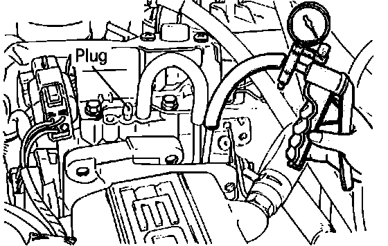 2. While the engine is cold (coolant temperature less than 60 degrees C or 140 degrees F) race the engine while observing the vacuum gauge of the vacuum pump and note that there is no vacuum.