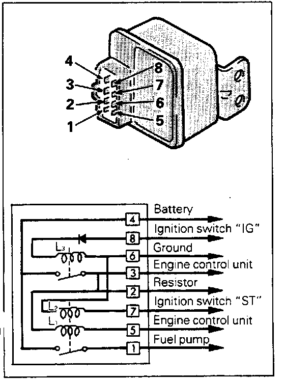 Note: Failure of the control relay prevents power supply to the fuel pump. injectors and engine control unit, resulting in start failure.