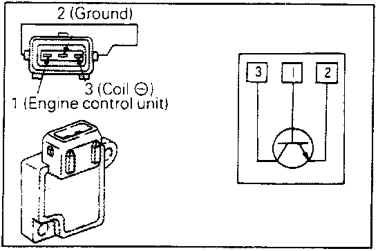 (2) Connect a power supply of 1.5 V to terminals l (+) and 2 (-) of the power transistor and then check for continuity between terminals 3 and 2 under power ON and power OFF conditions.