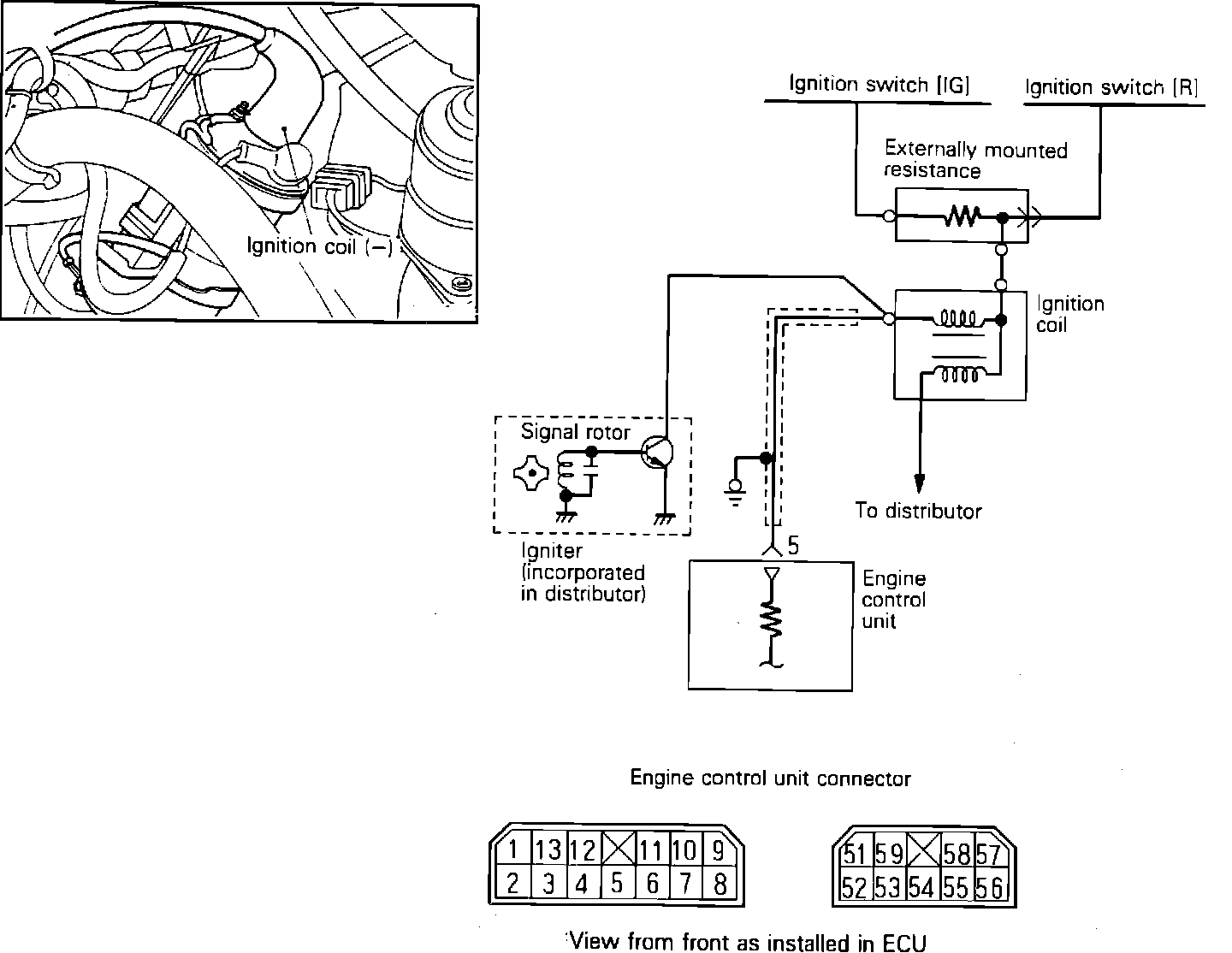 To test the Engine Speed Signal to the ECU, locate pin 10 on the ECU connector and test for the presence of an engine speed signal by connecting either a dwell meter or a tachometer. Either device will indicate the presence of a signal while the engine is running.