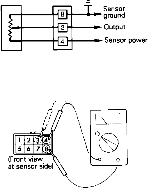 3. Check for continuity between the TPS harness connector terminal 8 and ground.