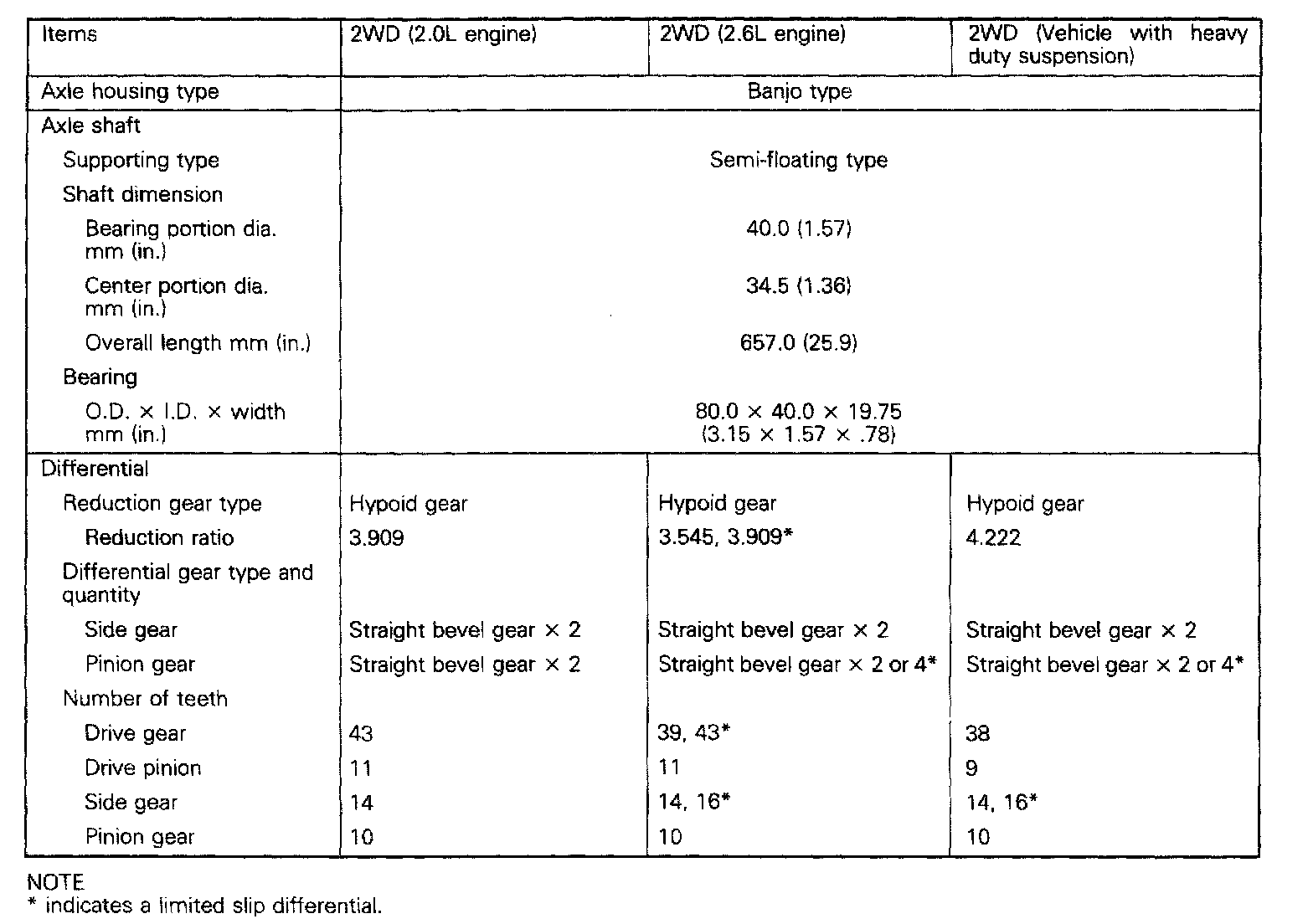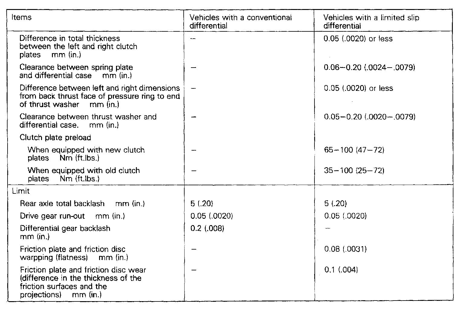 KM132/AW372, 2WD Rear Differential Standard Values & Limits: