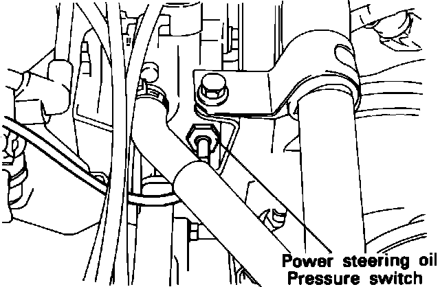 To test the Power Steering Switch remove the connector and test the terminal for ground with a continuity tester (ohm meter). With the engine running and the power steering under a load (steering wheel being turned from stop to stop) there should be a ground, with no load (steering wheel centered and stationary) there should be no ground.