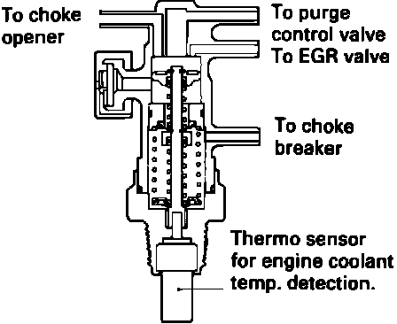 When the engine is cold the thermo valve vents ported vacuum to atmosphere and prevents EGR valve operation.