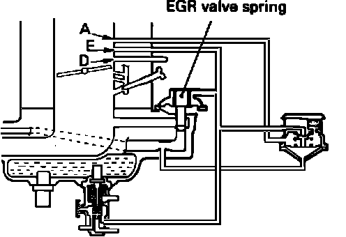 Exhaust gas recirculation is used to reduce oxides of nitrogen emissions in the vehicle exhaust. EGR uses partial recirculation of exhaust gases from a port in the cylinder head to a port in the intake manifold. The EGR valve controls the flow of exhaust gas in response to ported vacuum