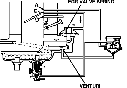 During light to moderate engine load operation ported vacuum increases and opens the EGR valve. Exhaust gas flow through the EGR venturi creates a vacuum which is applied to the lower chamber of the VRV.