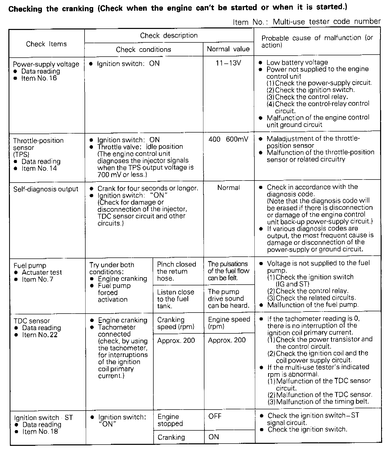 CRANKING CHECK