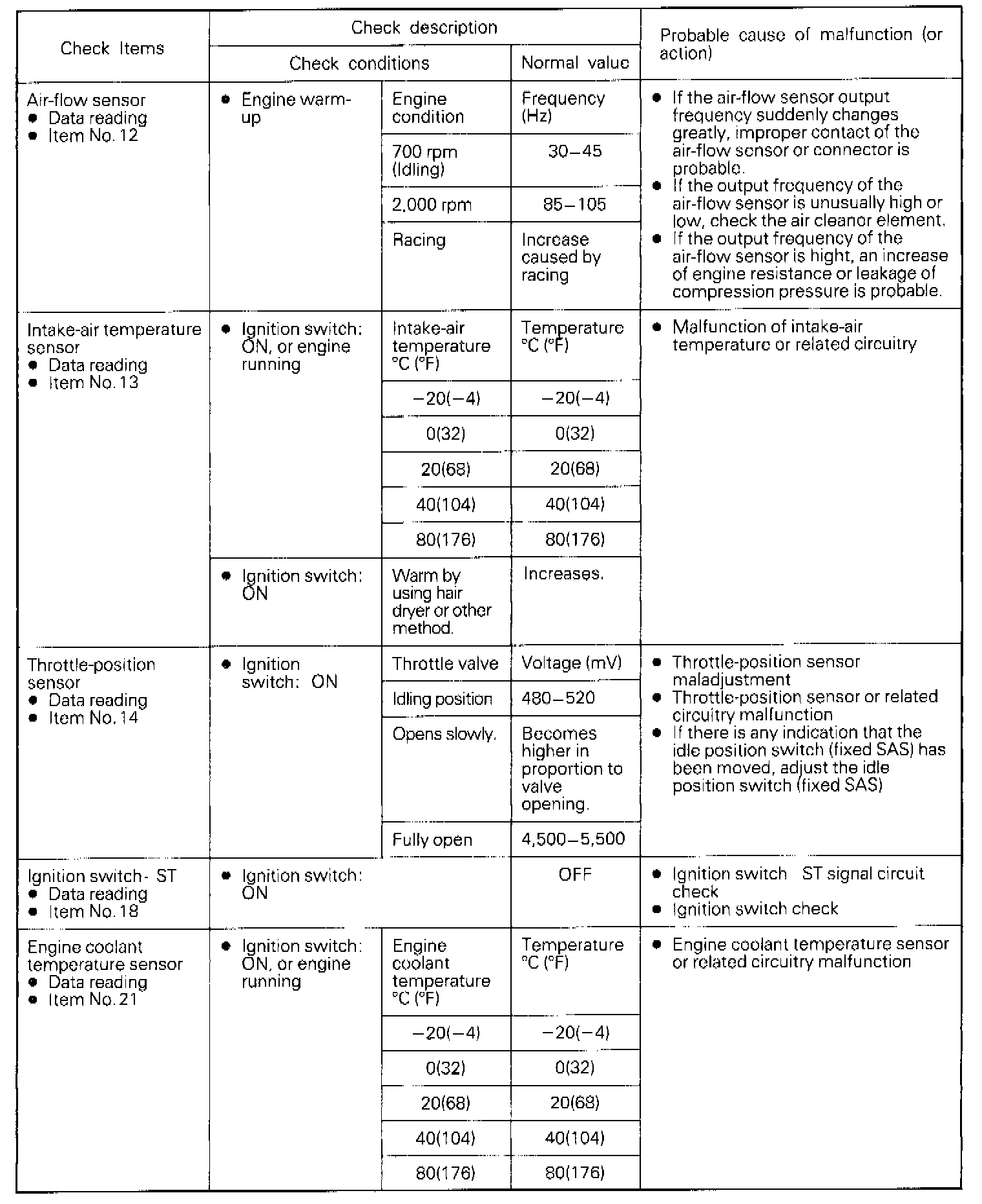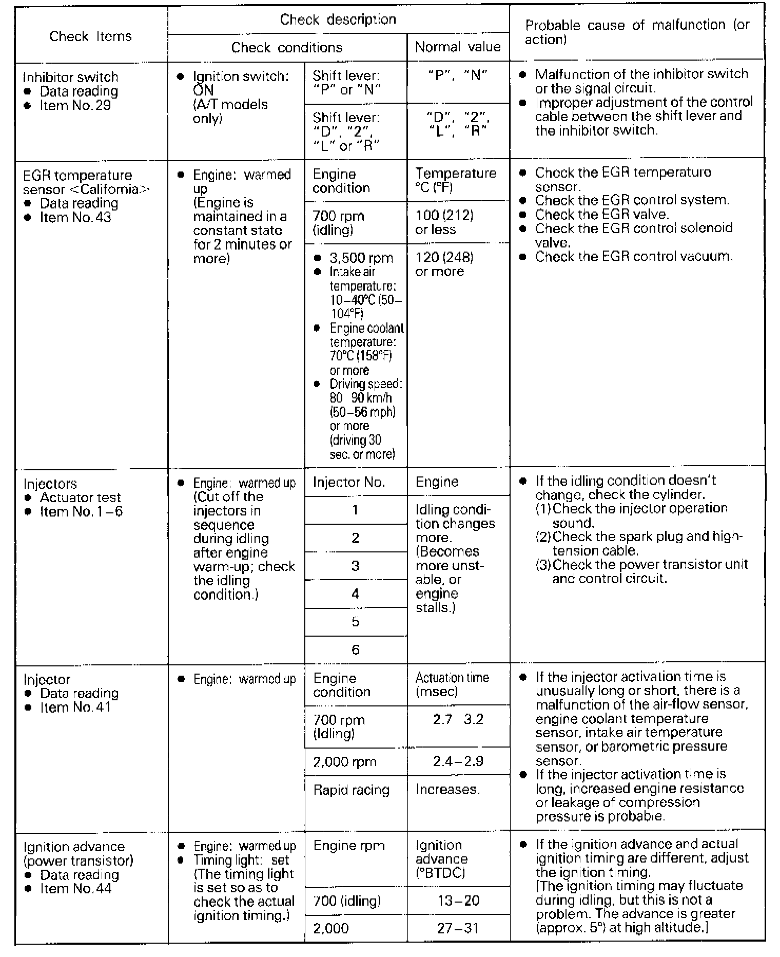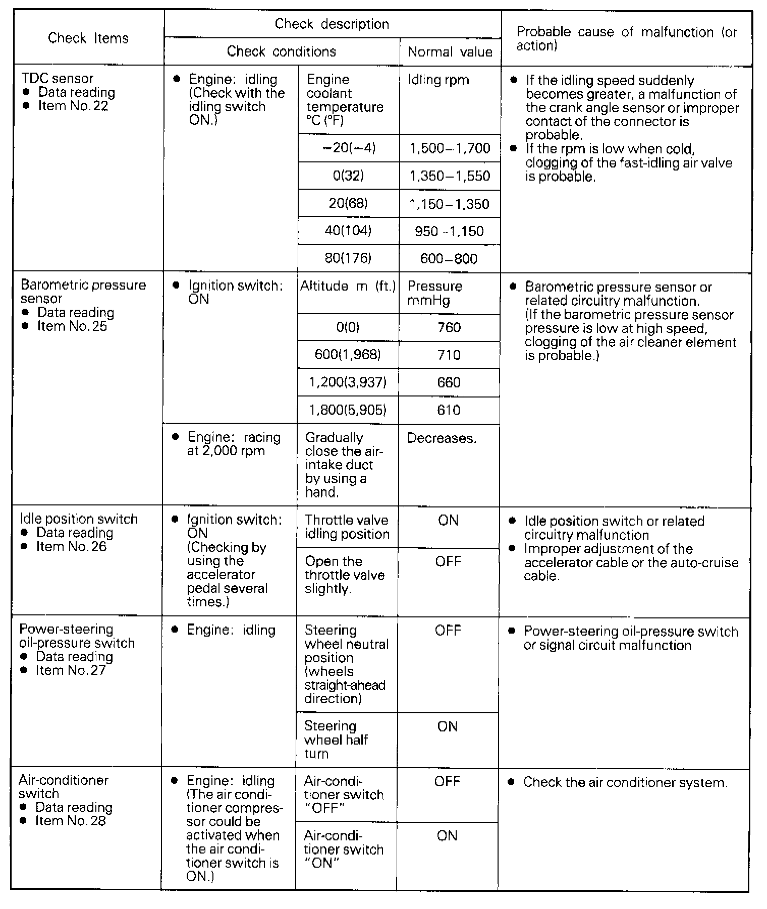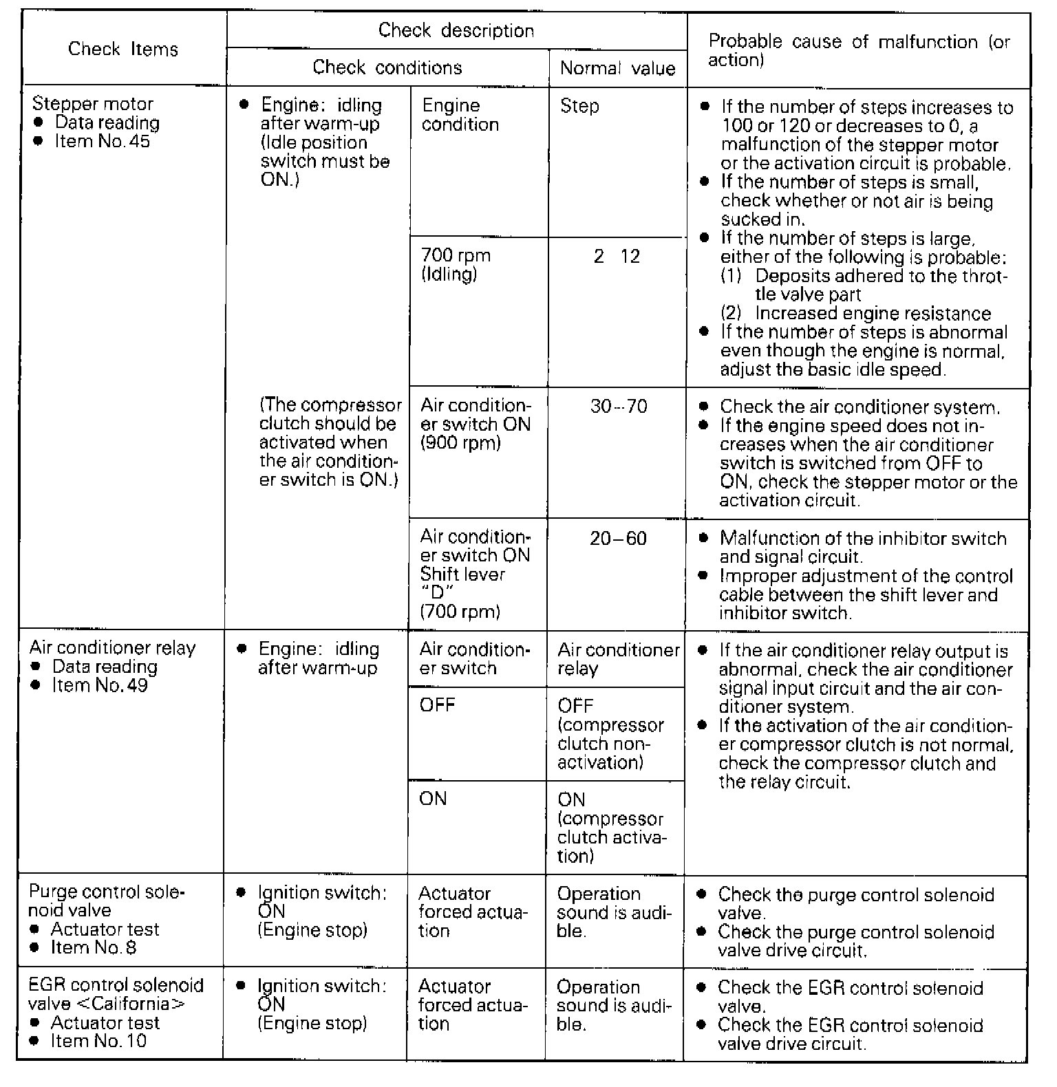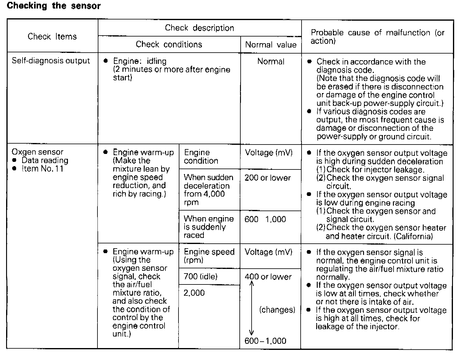 NOTE: If the malfunction indicator light (engine-check light) illuminates while the checks are being made, check the self-diagnosis output.