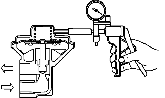 4. Apply 6 kPa or 1.7 in. Hg of vacuum to the valve and verify that air does not pass through the EGR valve.