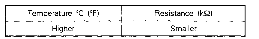 The 5V power supply within the engine control module is supplied, by way of the resistance within the unit, to the intake air temperature sensor; it passes through the intake air temperature sensor, which is a type of resistor, and is grounded at the engine control module. Note that the resistance of the intake air temperature sensor decreases when the temperature of the intake air increases.