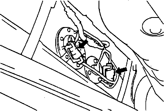 The fuel pump harness connector is located on the forward end of the fuel tank.