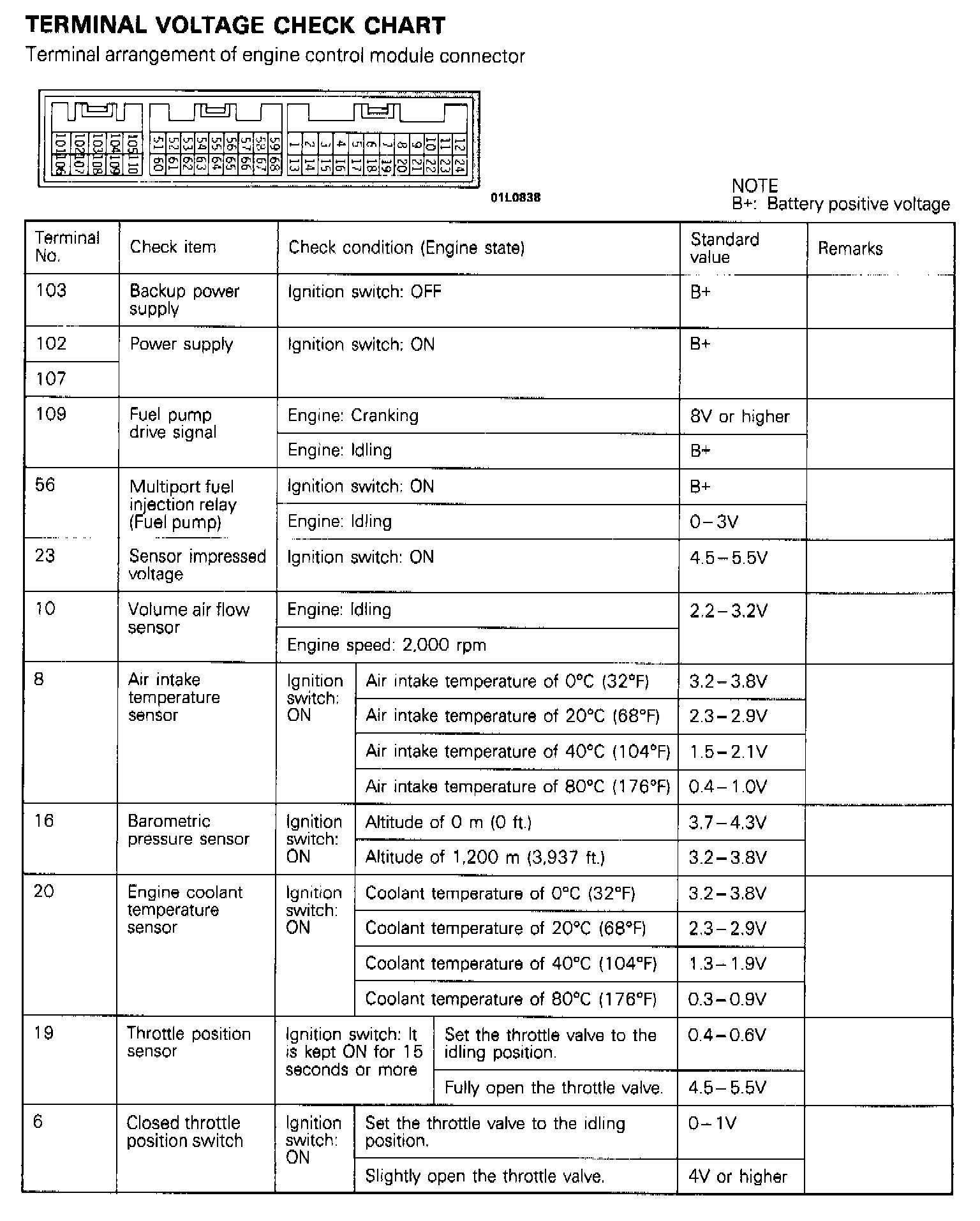 TERMINAL VOLTAGE CHECK CHART