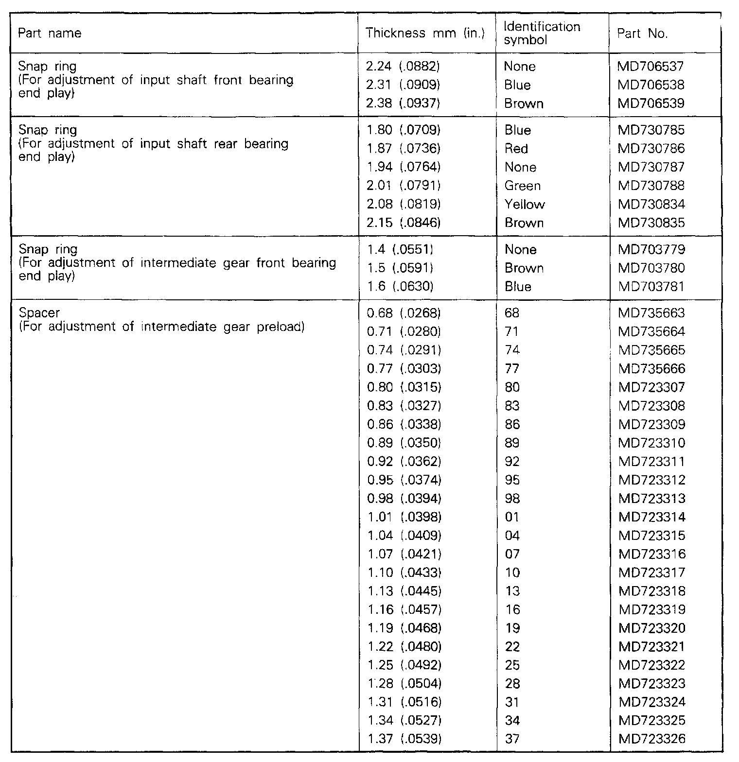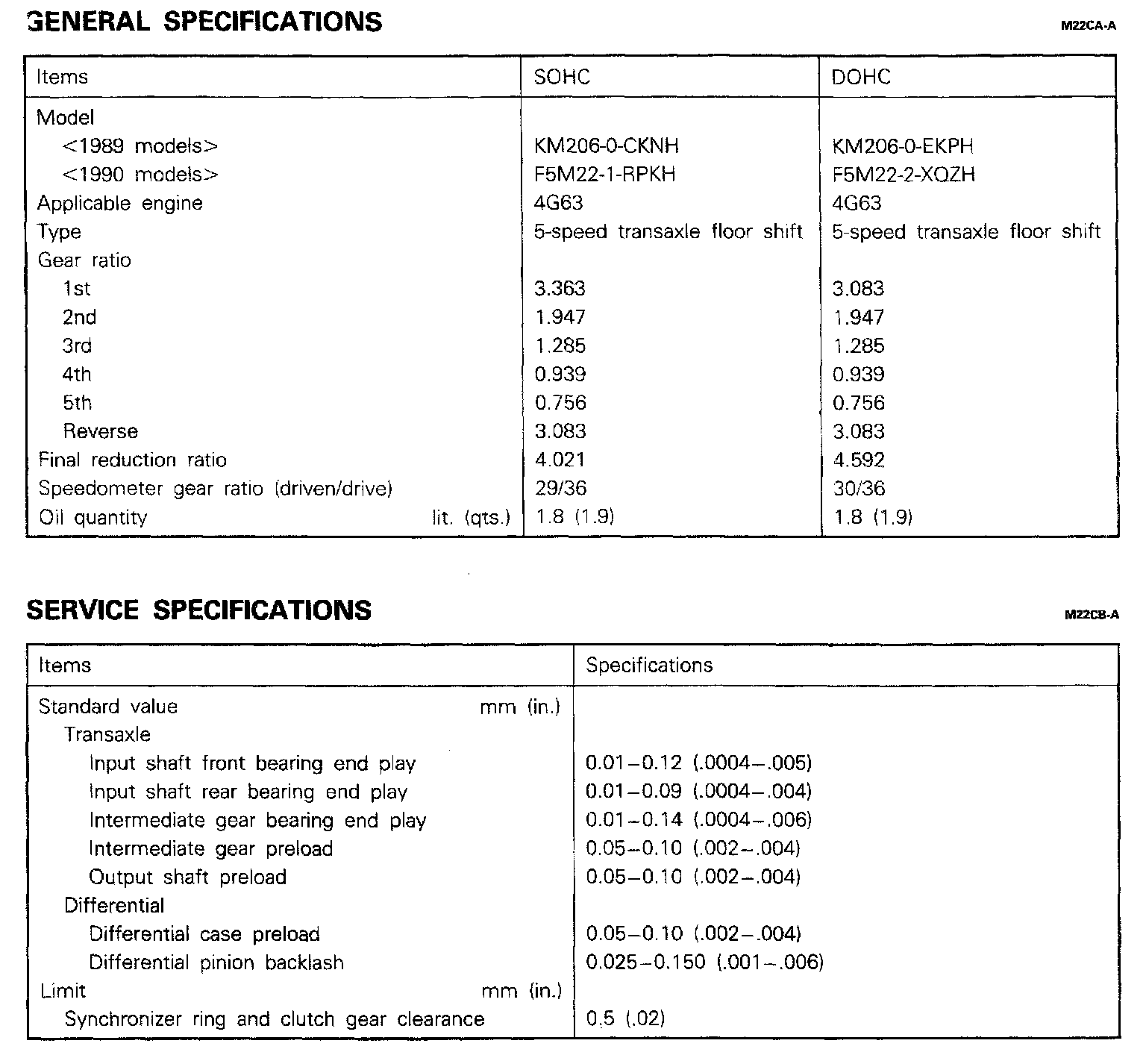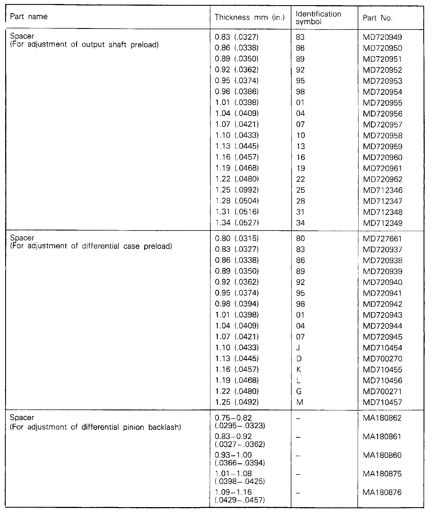 5-spd M/T, Output Shaft & Differential Preload / Backlash: