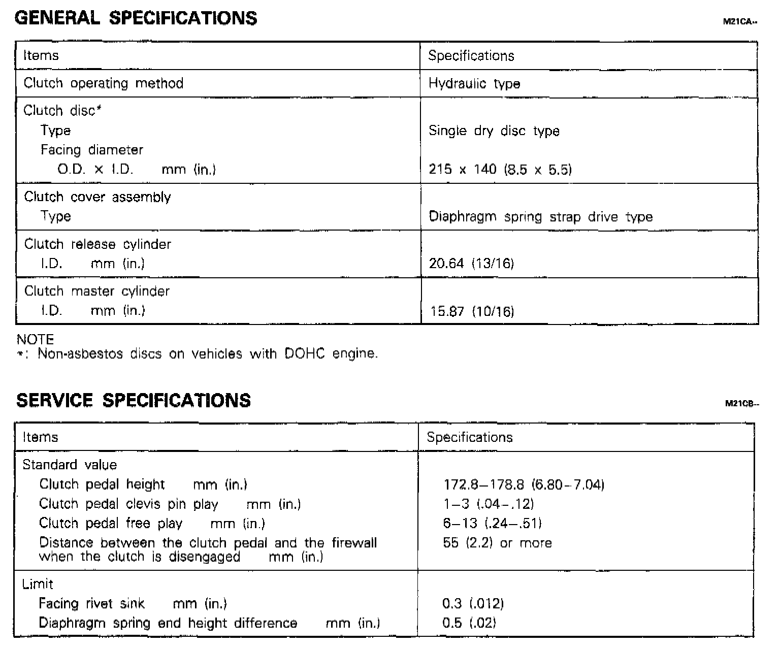 KM206 5-spd M/T, Clutch Dimensions: