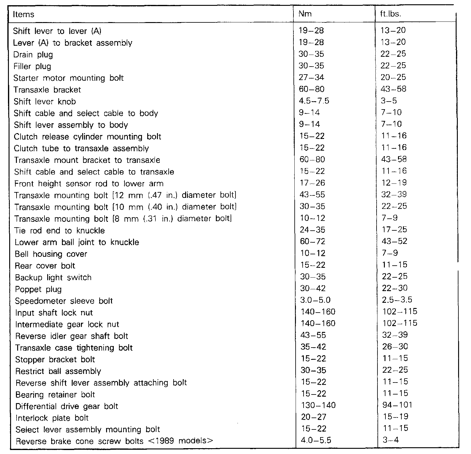 5-spd M/T, Transaxle Torque: