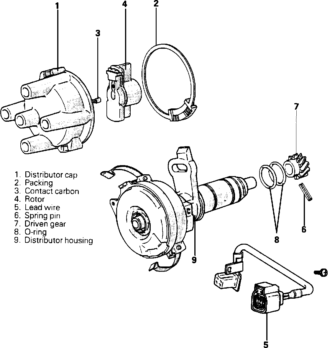 7. Inspect the distributor cap for continuity between the input and output side of each terminal.