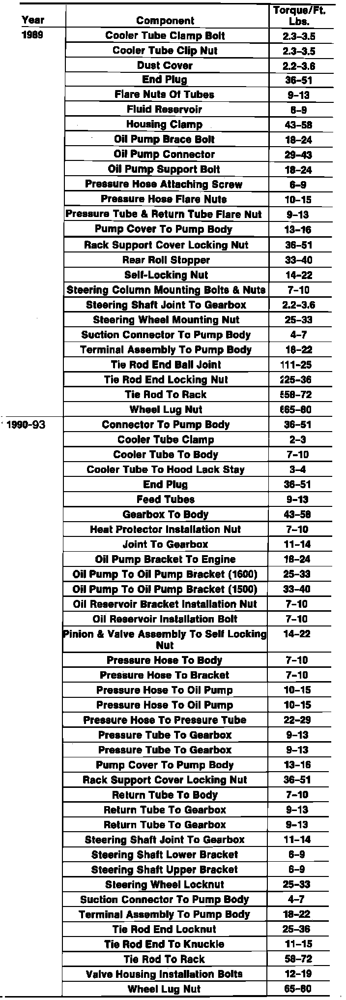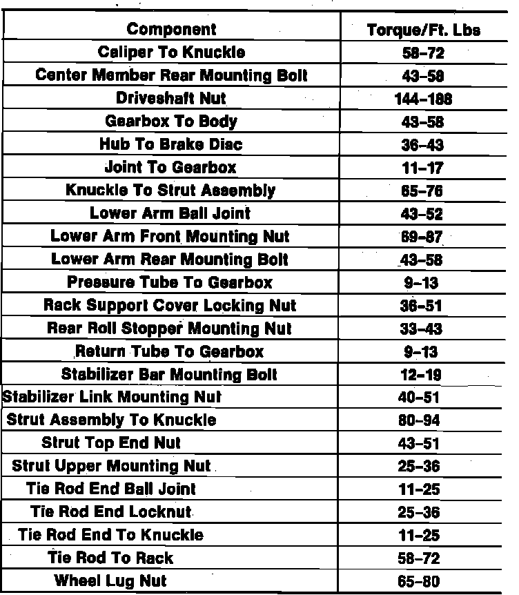 Fig. 49 Tightening Specifications. Mirage: