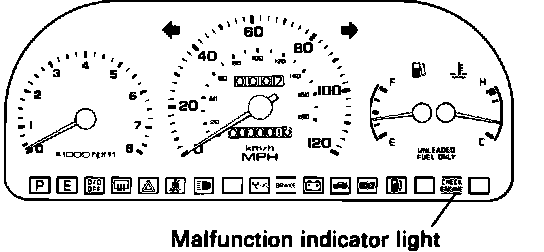 Many components of the emission control system are monitored for proper operation by the Electronic Control Unit or ECU. In the event improper operation is detected the ECU will store an error code or codes indicating which component has failed to operate correctly and light the Malfunction Indicator Light. The diagnostic codes can be extracted to assist in diagnosis and testing of emission control system failures. Be sure to extract diagnostic codes before disconnecting the vehicle battery or the codes will be lost. (The diagnostic codes will not be lost if battery power is restored to the ECU in less than ten seconds.) The Malfunction Indicator Light is cleared when the ignition is turned off and will only light again if the malfunction is once again detected. If the malfunction returns to normal during operation the light will also turn off.