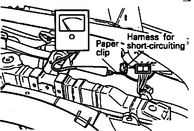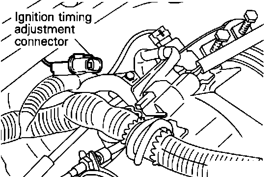 4. With the engine off, ground the ignition timing adjustment terminal with a jumper lead (routed at the top of the firewall).