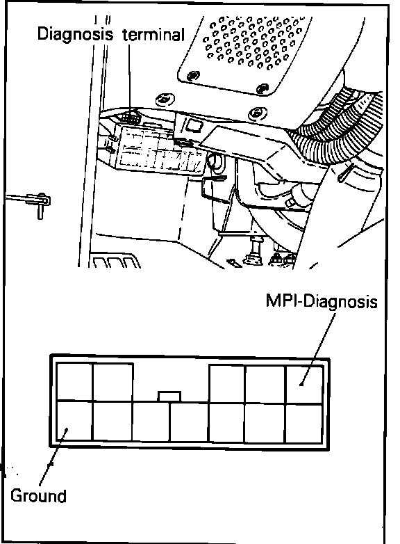 NOTE: Diagnostic memory is erased if the battery or the ECU connector is disconnected. Do not disconnect the battery before the trouble codes are completely read. If a sensor connector is disconnected with the ignition switch turned on, the diagnosis code is memorized. In this case, disconnect the battery negative terminal for 15 seconds or more, and all diagnostic memory will be erased.