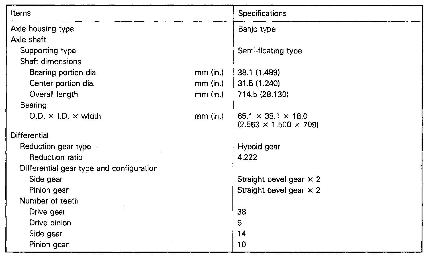 R4AW2 4-spd A/T, 2WD Rear Differential Dimensions: