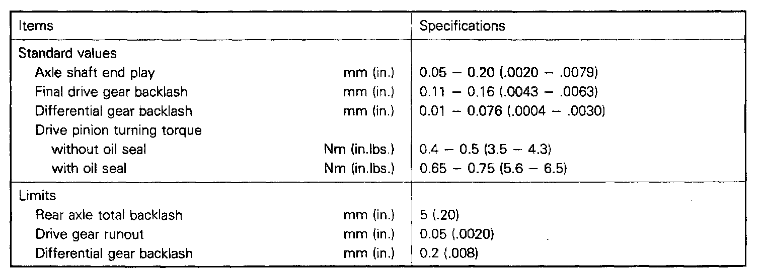 R4AW2 4-spd A/T, 2WD Rear Differential Standard Values & Limits: