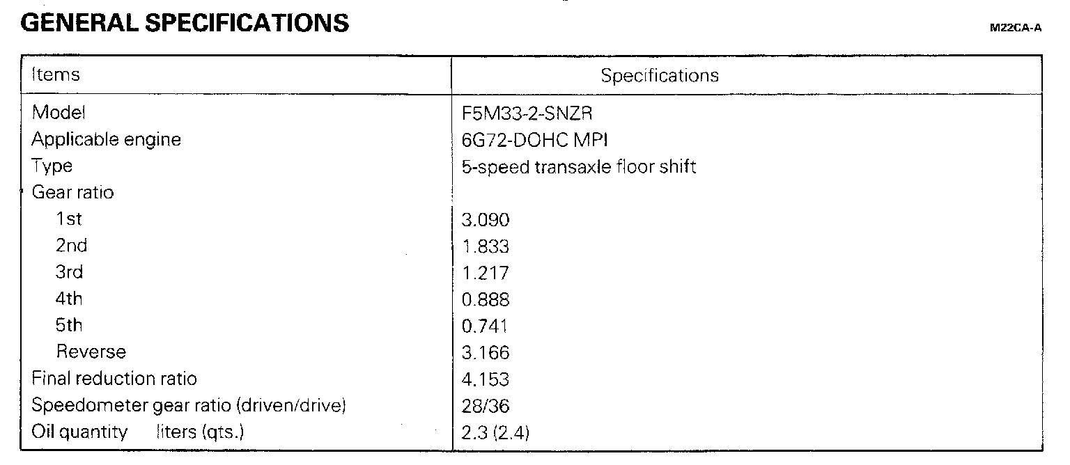 F5M33 5-spd M/T, Gear Ratio: