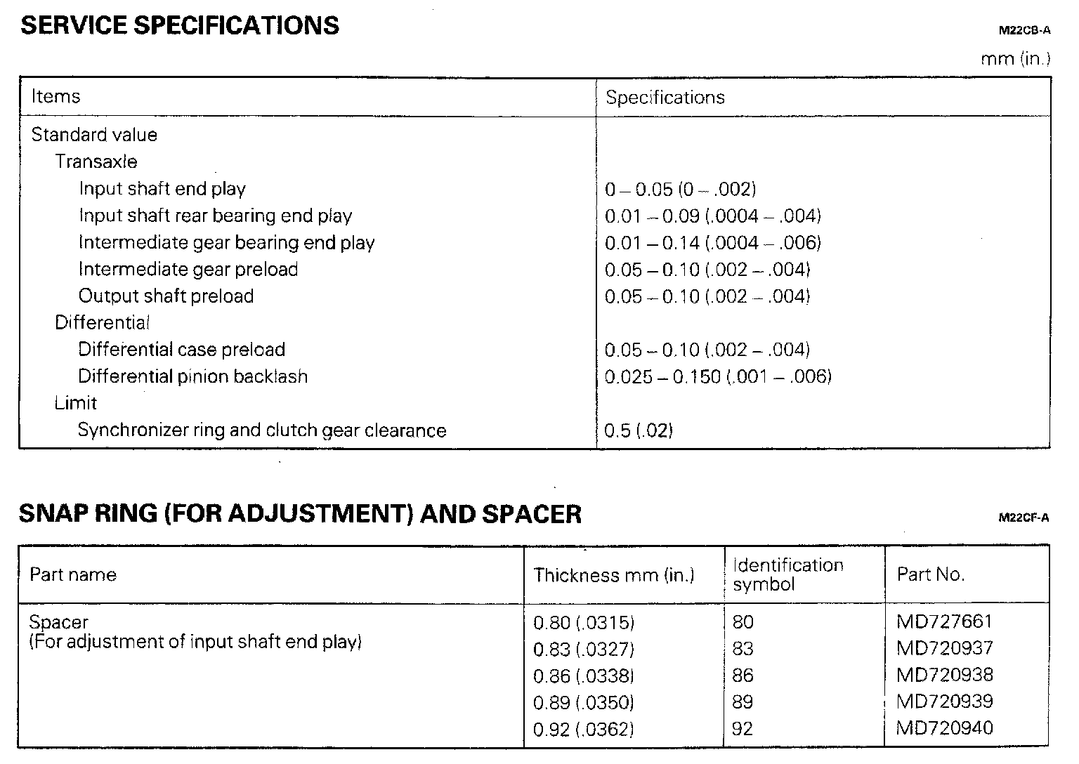 F5M33 5-spd M/T, Standard Values & Limits: