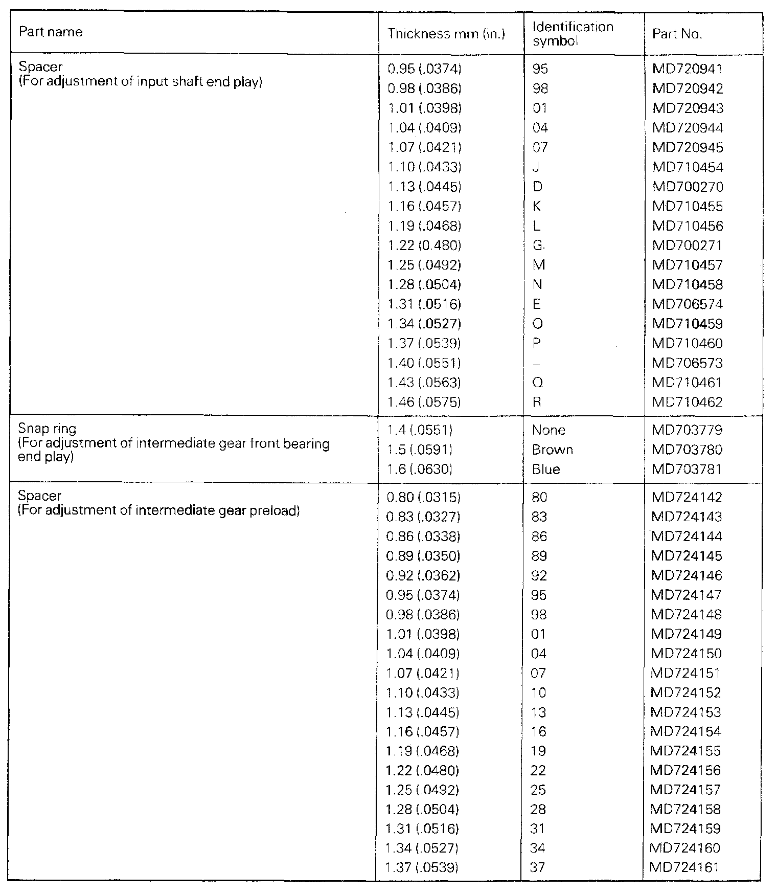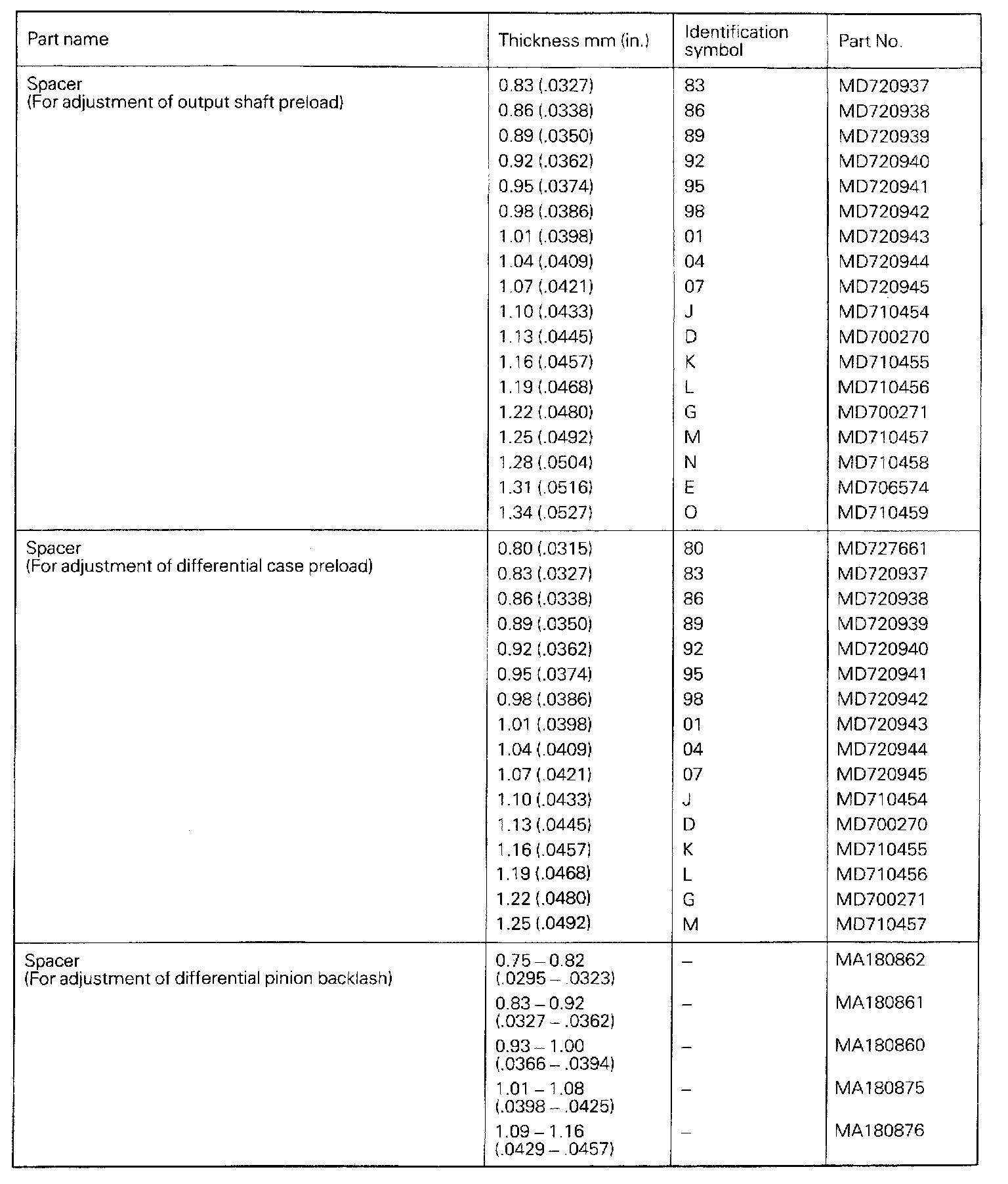 F5M33 5-spd M/T, Output Shaft & Differential Pinion Backlash: