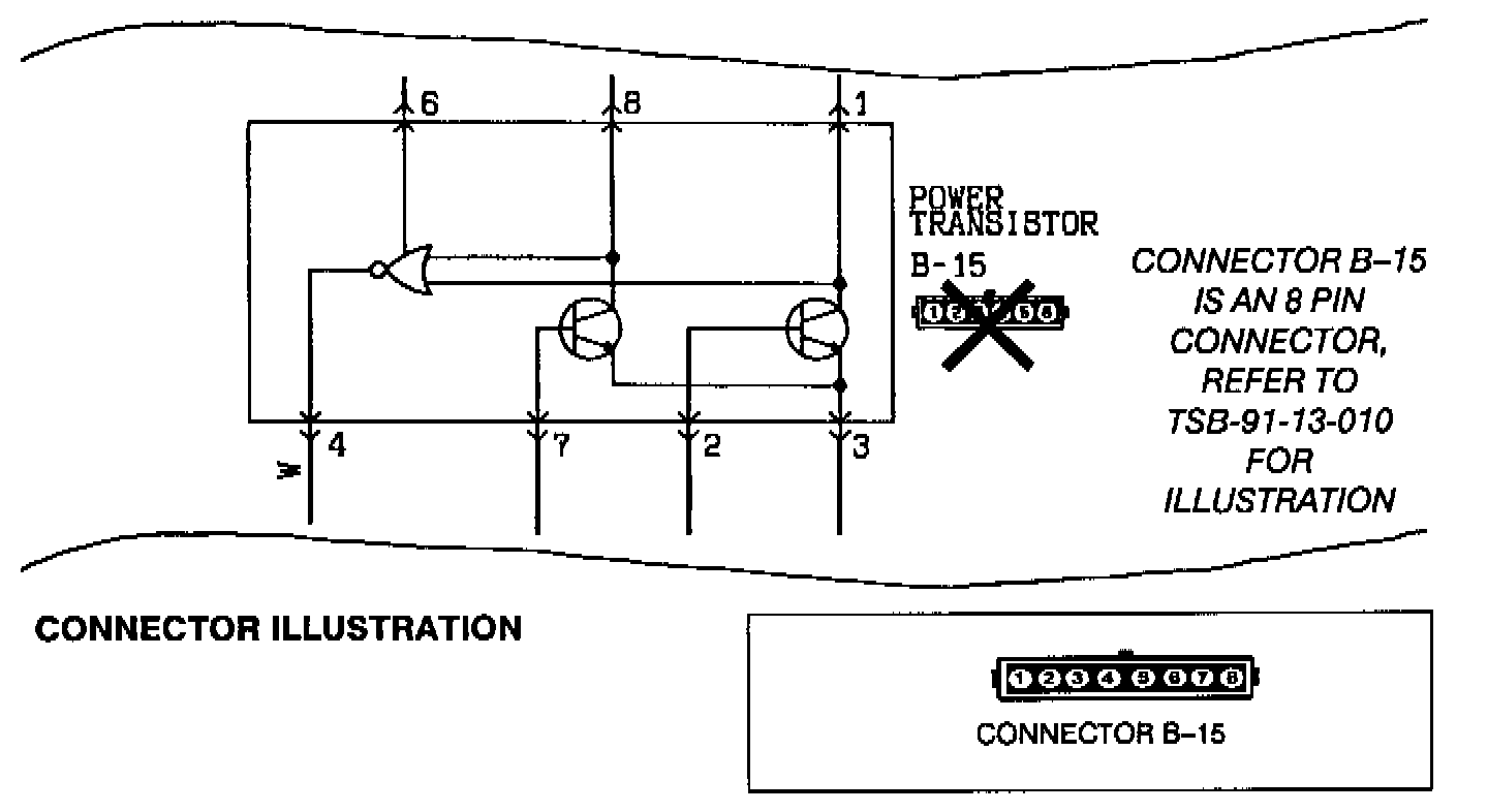 As shown, please write "CONNECTOR B-15 IS AN 8-PIN CONNECTOR, REFER TO TSB-91-13-010 FOR ILLUSTRATION."