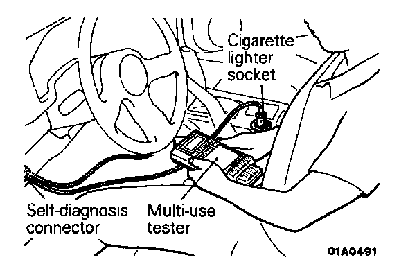 (3) Connect the multi-use tester to the diagnosis connector.