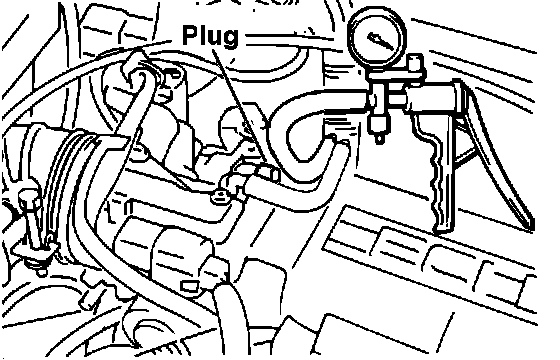 1. Disconnect the red striped vacuum hose from the throttle body and connect a hand vacuum pump to the hose and plug the nipple.