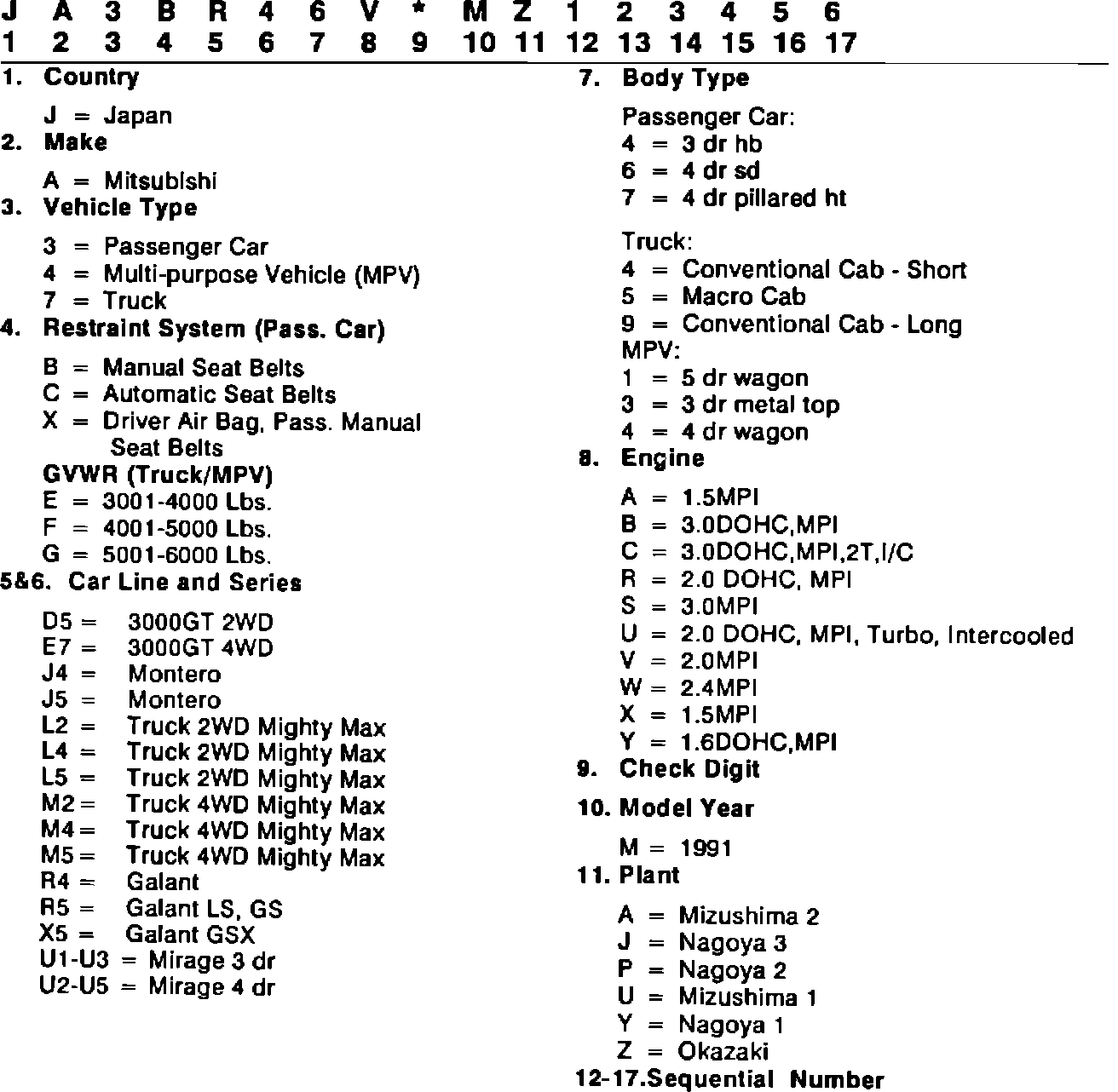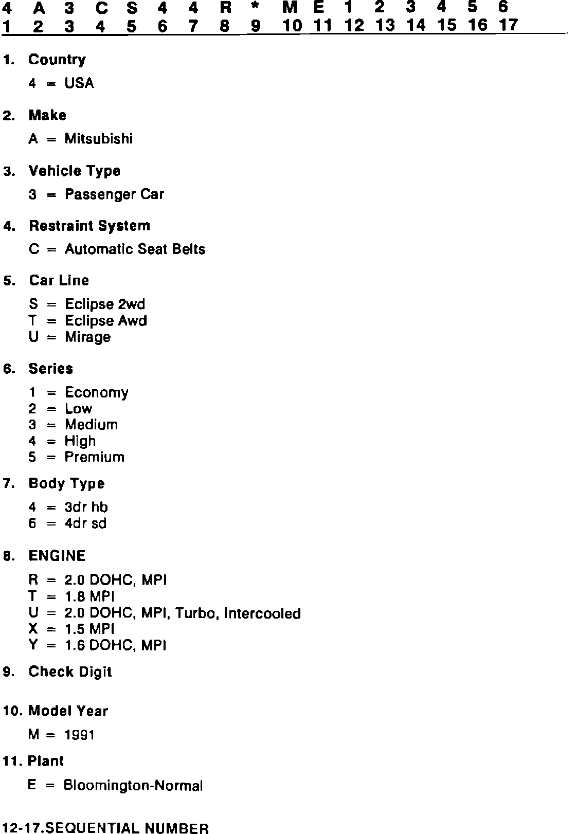 VIN CODING SYSTEM - 1991 ECLIPSE AND MIRAGE
